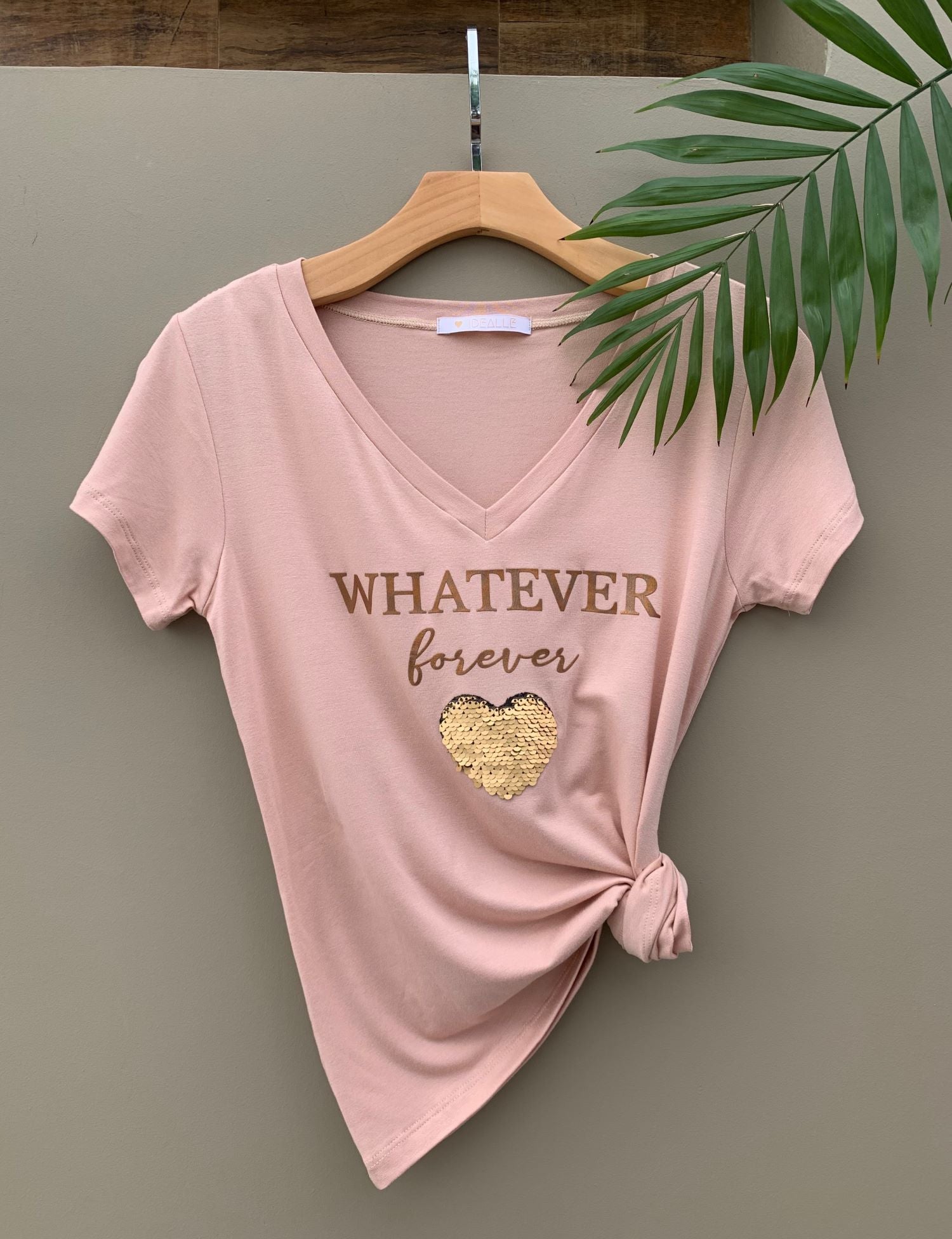 T-Shirt Whatever une a versatilidade com a praticidade, que expressa uma mulher encantadora e inesquecível. Disponível na cor rose e decote V.